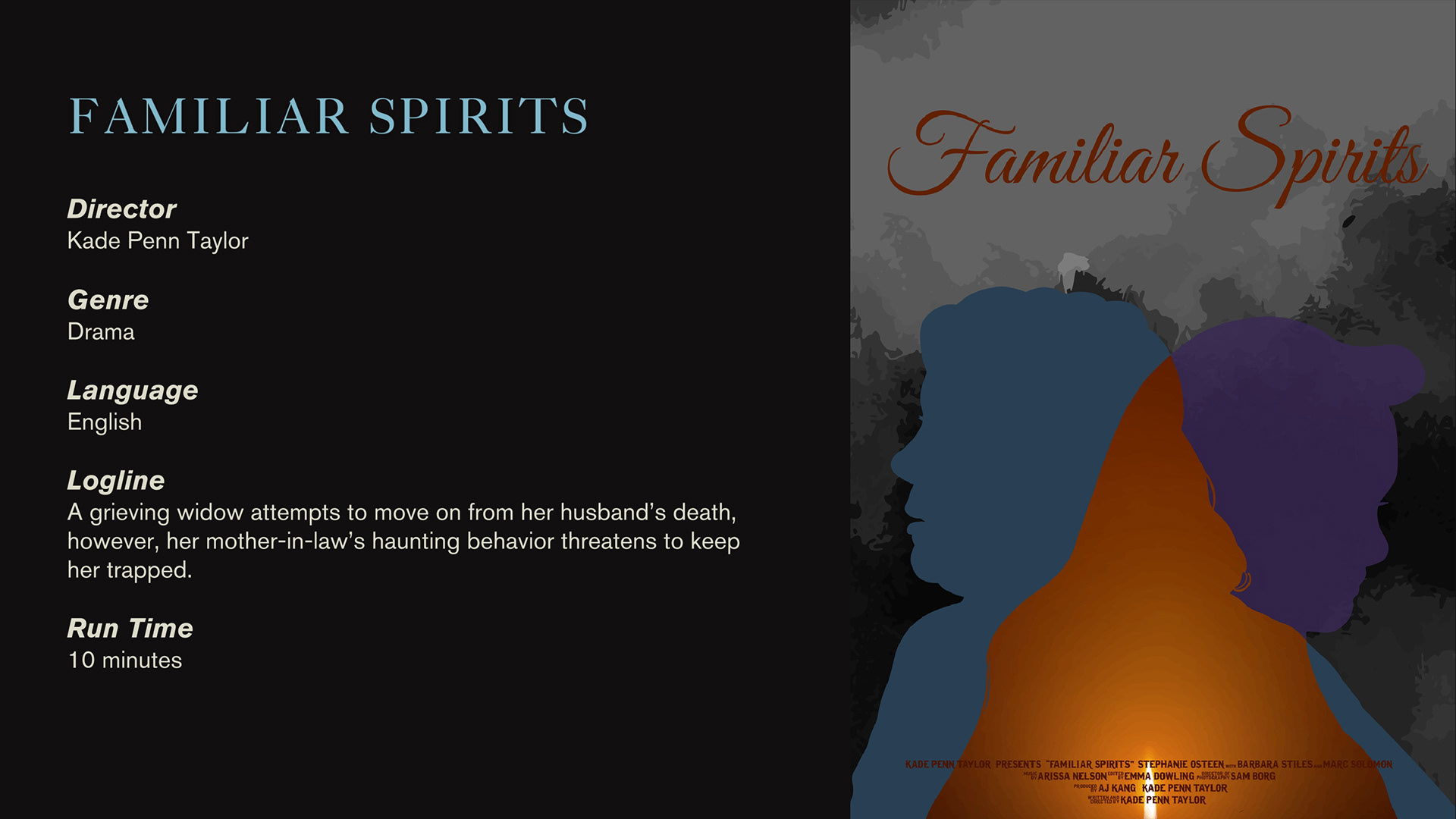A grieving widow attempts to move on from her husband's death, however, her mother-in-law's haunting behavior threatens to keep her trapped forever in... FAMILIAR SPIRITS